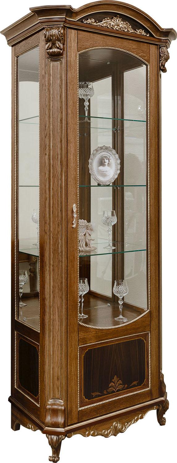 Шкаф с витриной "Альба 8" П 485.08 палисандр (с зол., с сер.) фабрики Пинскдрев в классическом стиле характерна массивность, основательность и пышность форм. Альба является классическим примером мебели из массива дуба. Она включает в себя мебель для