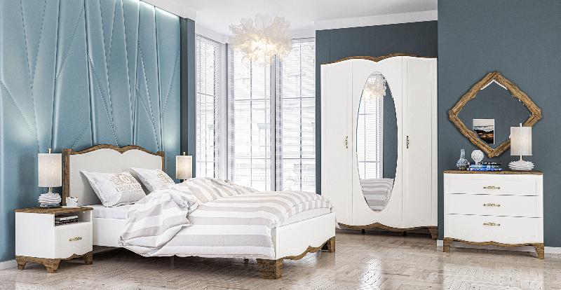 вам как спальню, так и гостиную. Чистый белый цвет в сочетании с благородной древесной текстурой мебели Тиффани идеально подойдет для интерьера квартиры либо загородного дома создавая гармоничную и уютную атмосферу.