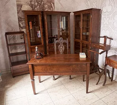 Мебель фабрики Tadorna Furniture, выполненная из массива березы в цвете: орех, темный орех. В материале массив берёзы/МДФ в цвете: слоновая кость, белый, с золотой и серебряной патиной. Также есть шкафы, которые могут компоноваться в "стенки". Варианты компоновок могут быть выполнены по индивидуальному заказу. Модульные шкафы между собой соединяются стяжками, а цоколь и корона крепятся на саморезы. Цоколи оснащены специальными ножками для регулирования по высоте. Мебель представляет собой превосходное сочетание классического стиля и современного качества. Идеально подходит для гостиной, кабинета и домашней библиотеки. Фотографии на сайте могут не передавать точный тон мебели, уточняйте у наших менеджеров.