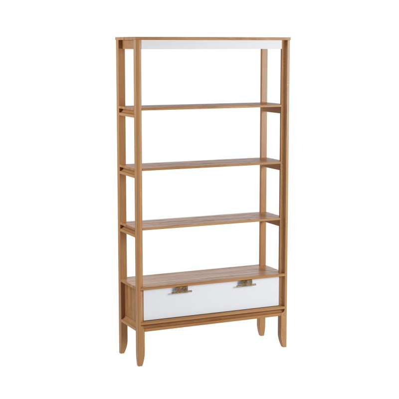 Стеллаж Бридж сквозной широкий с 1 ящиком (стеллаж 001) браун/белый лак