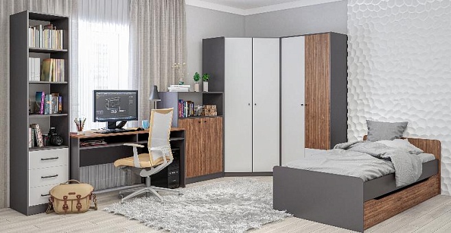 Коллекция Мальма для кабинета или молодежной комнаты создана белоруской фабрикой Неман. Выполнена в стиле минимализм, что характерно для этого стиля: функциональность и нейтральное цветовое сочетание.