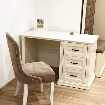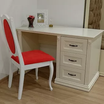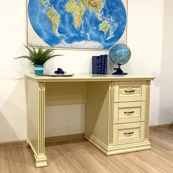 Письменный стол Верона выполнена из бук+МДФ, в классическом стиле. Стол Верона имеет тумбу с выдвижными ящиками. Направляющие на ящиках Boyard в базовой комплектации без доводчиков. Дополнительно возможна установка с доводчиками и патинирование эллементов на фасаде. Ручки металлические. Возможно изготовление в нестандартном размере, подробности уточняйте у менеджеров.