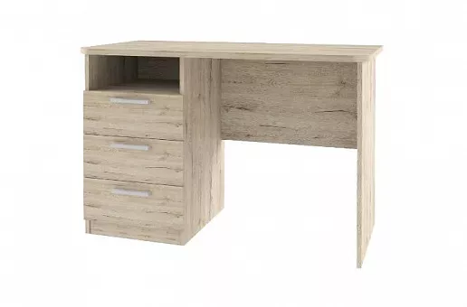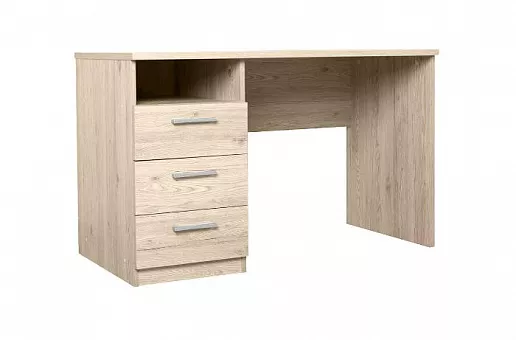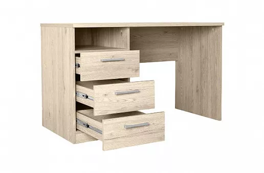 Стол письменный 3SN OSKAR компактное оформление учебной зоны в интерьере молодёжной комнаты или кабинета. Стол письменный 3SN имеет прямую конструкцию. Конструкция элемента представляет собой столешницу прямоугольной формы, тумбу с тремя выдвижными ящиками (3S) и открытую нишу (N) (расположение слева), правую опору, панель соединительную.