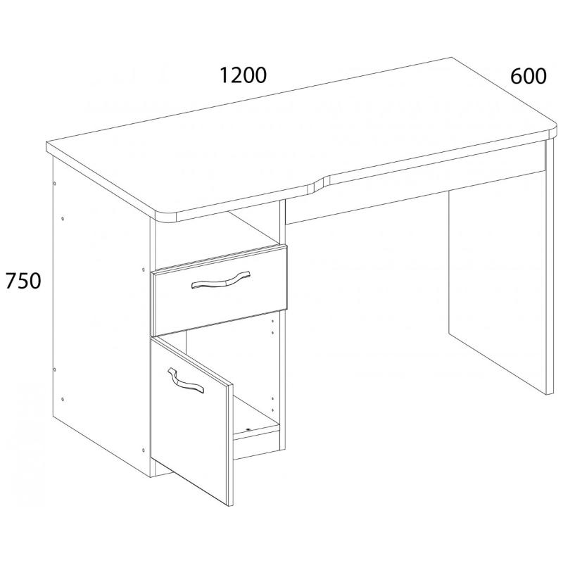 С помощью письменного стола OLIVIA возможно организовать рабочую или учебную зону, дополнительно используя такие элементы коллекции OLIVIA, как кровать 90 и 120, также предметы из шкафной и комодной групп. Стол письменный имеет прямую конструкцию. Конструкция стола письменного представляет собой столешницу (ширина – 1200 мм), под столешницей представлен выдвижной ящик (для хранения учебных принадлежностей, канцелярии и других предметов), тумбу с одним выдвижным ящиком и нишей, нишей за глухой дверью (расположение тумбы слева), панель соединительную. Дверь распашная, крепится на петли к боковому корпусу изделия.