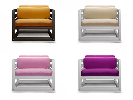 Данная модель выполнена из массива дерева, с мягким матрасом и двумя приспинными подушками, выглядят уютно и гостеприимно.