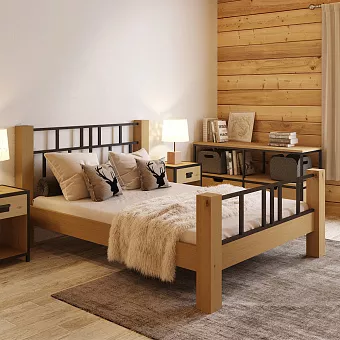Все элементы Серии Лофт выполнены из массива сосны с металлическим каркасом. Поставляется в разобранном виде. В комплекте царги и три поперечных подматрасных бруса (на фото). Вес изделия 56 кг. объем 0,35 Тон мебели может отличатся от фотографии на сайте.Поставляется в разобранном виде из 3-х упаковок. В комплекте царги, центральный брус и подматрасные рейки. Толщина ножек 80х80мм