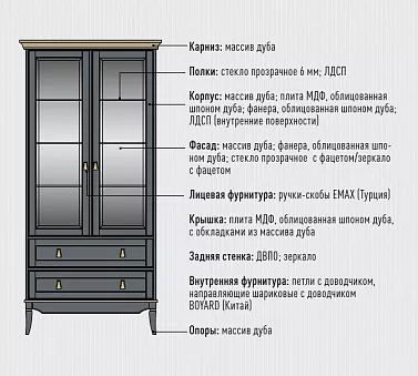 Корпус: МДФ, облицованный шпоном дуба, с обкладками из массива (дуба).