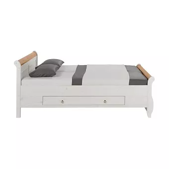 Эта модель кровати коллекции «Мальта» 140 отличается наличием ящиков для хранения нужных вещей. Это удобная и компактная конструкция, которая впишется даже в спальную зону квартиры-студии. Изготовлена из натурального массива. Матрас, ортопедическое основание или настил необходимо покупать отдельно.