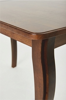также 4 цвета нитролаковой покраски: бесцветный натуральный тон, шоколад, орех, венге.В коллекции представлены обеденные столы: прямоугольные, круглые раздвижные и нераздвижные компатных и больших размеров.