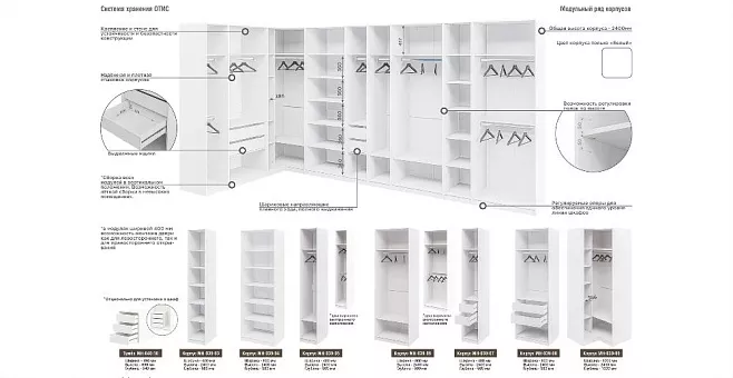 Модульная система Отис – это идеальный вариант для хранения одежды, обуви и аксессуаров. Два вместительных шкафа шириной 80 см позволят разместить все необходимое, глубина 45 см. сэкономит пространство. Вариативность внутреннего наполнения, дополнительных панелей и разнообразных фасадов поможет составить индивидуальный проект с помощью серийной мебели от фабрики Неман. Специально для серии шкафов Отис разработаны дополнительные боковые панели в цвет фасадов шкафа. При необходимости такую панель можно установить на открытый торец изделия для создания единой цветовой гаммы гардероба или прихожей. Также панели рекомендуется использовать при стыковке модулей разной глубины. Материал:Линейка шкафов ОТИС предлагает 9 вариантов исполнения фасадов. Техническая информация: Материал корпуса: плита ЛДСП, цвет Белый, Дуб Прованс. Материал фасада: плита МДФ, ЛДСП. Кромка: пластик. Система выдвижения: скрытого типа с доводчиком Hettich. Фурнитура: петли с доводчиком GTV. Вешалка металлическая: цвет черный матовый. Ножки: с возможностью регулировки по уровню Gico. Ручки на выдвижных ящиках: металлические, цвет - шлифованная сталь. Верхние и нижние фасады открываются от нажатия (Push-to-Open). Подсветка светодиодная (холодный спектр).
