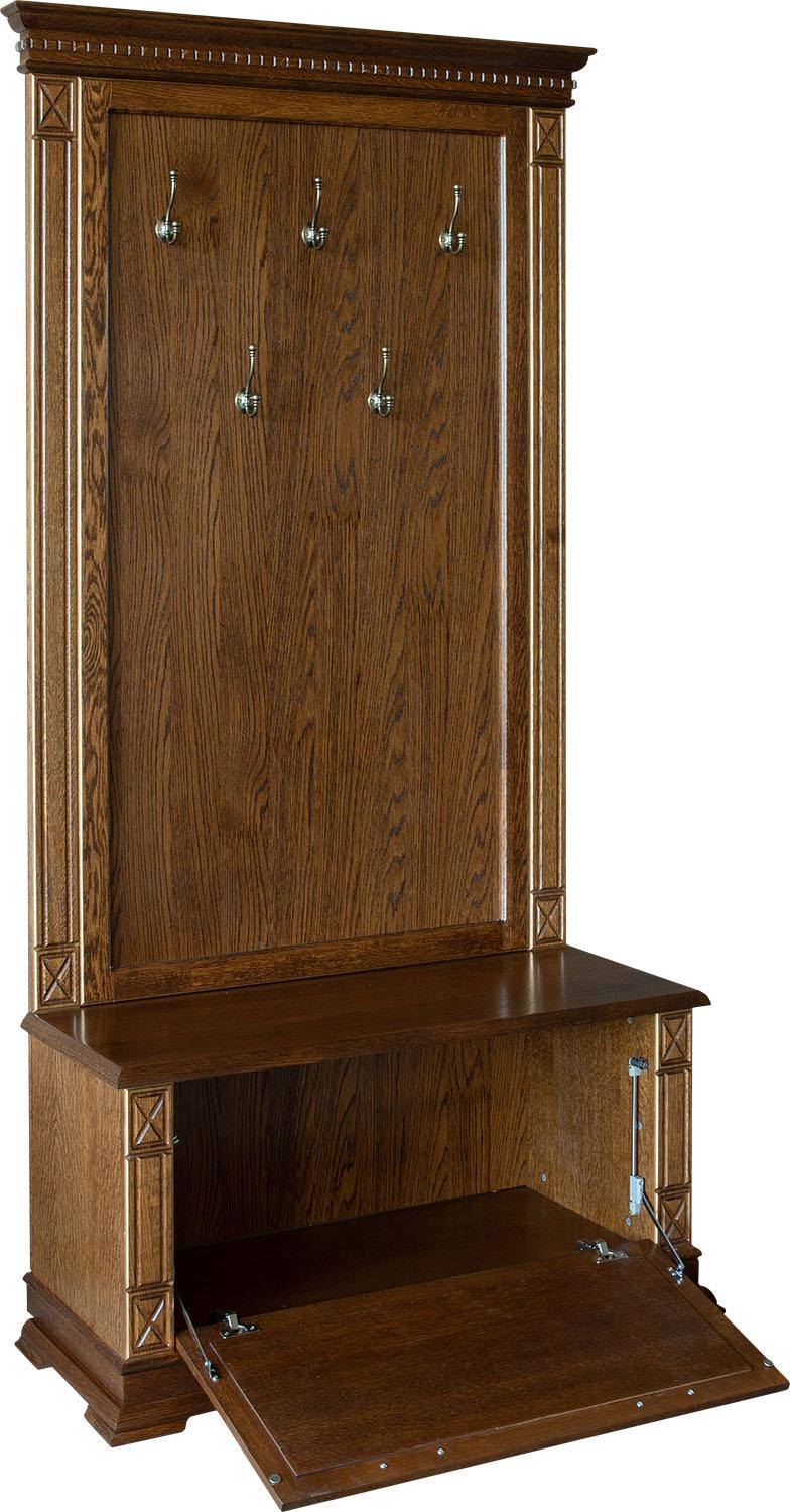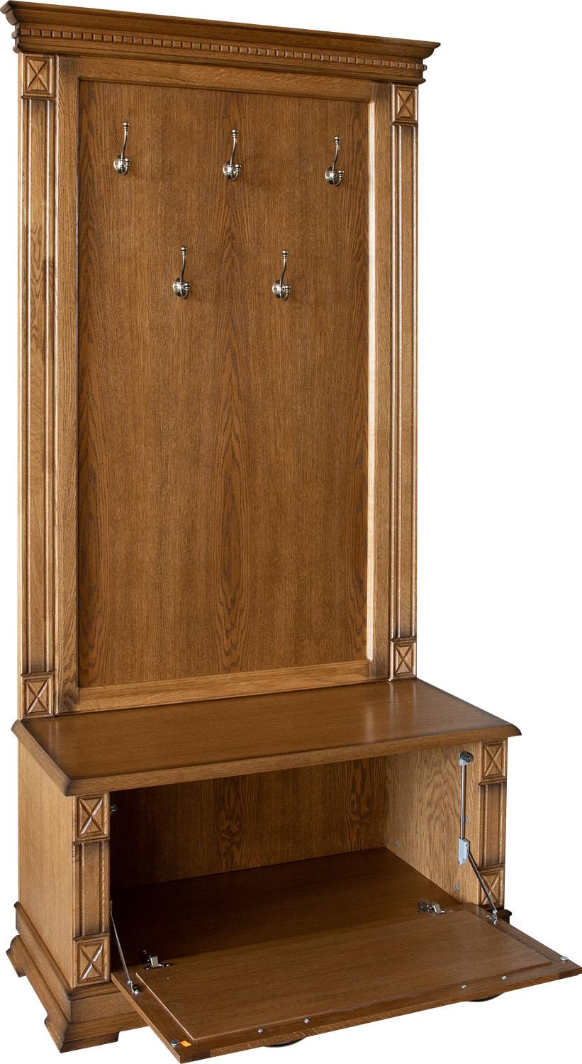 филёнка – массив дуба или стекло с фацетом. Крышки тумб представлены плитой ДСП, облицованной шпоном.