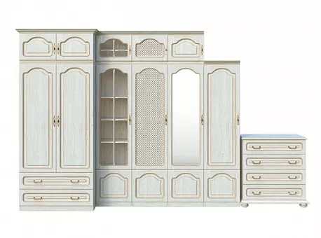 Все шкафы (кроме С-со стеклом) комплектуются 3-мя съемными полками и штангой для одежды.