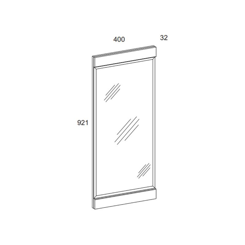 Зеркало навесное 40 прекрасно подойдёт для организации компактной и уютной прихожей даже небольшой площади, так как ширина зеркала – 400 мм, высота – 921 мм. Конструкция элемента представляет собой панель из ЛДСП, на которую крепится зеркало, две декоративные планки из ЛДСП.