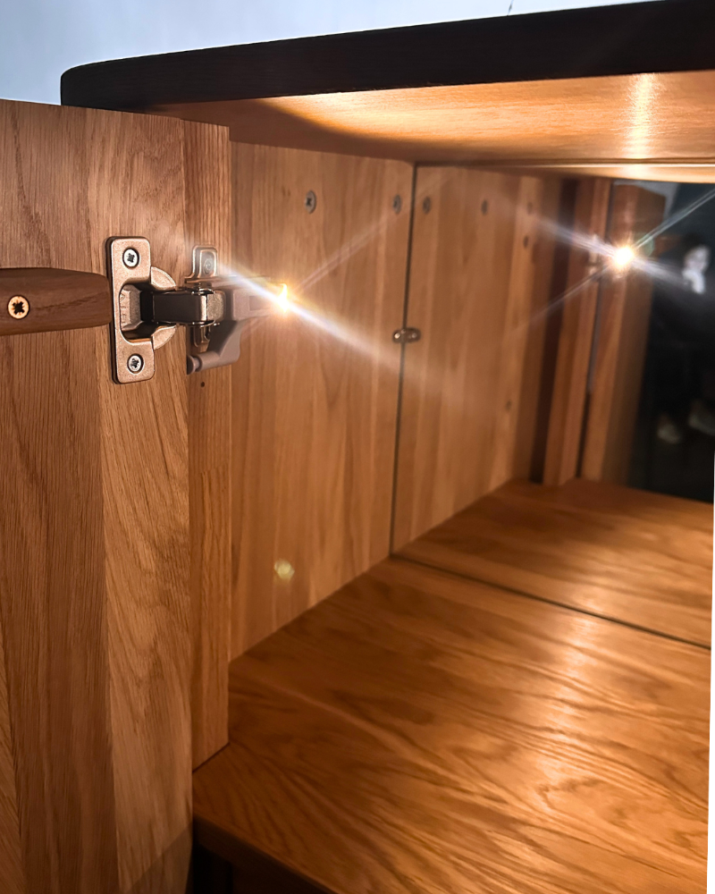 Поверхность мебели покрыта натуральными маслами премиальных брендов, которые подчёркивают естественный рисунок дуба и создают долговечное защитное покрытие.
