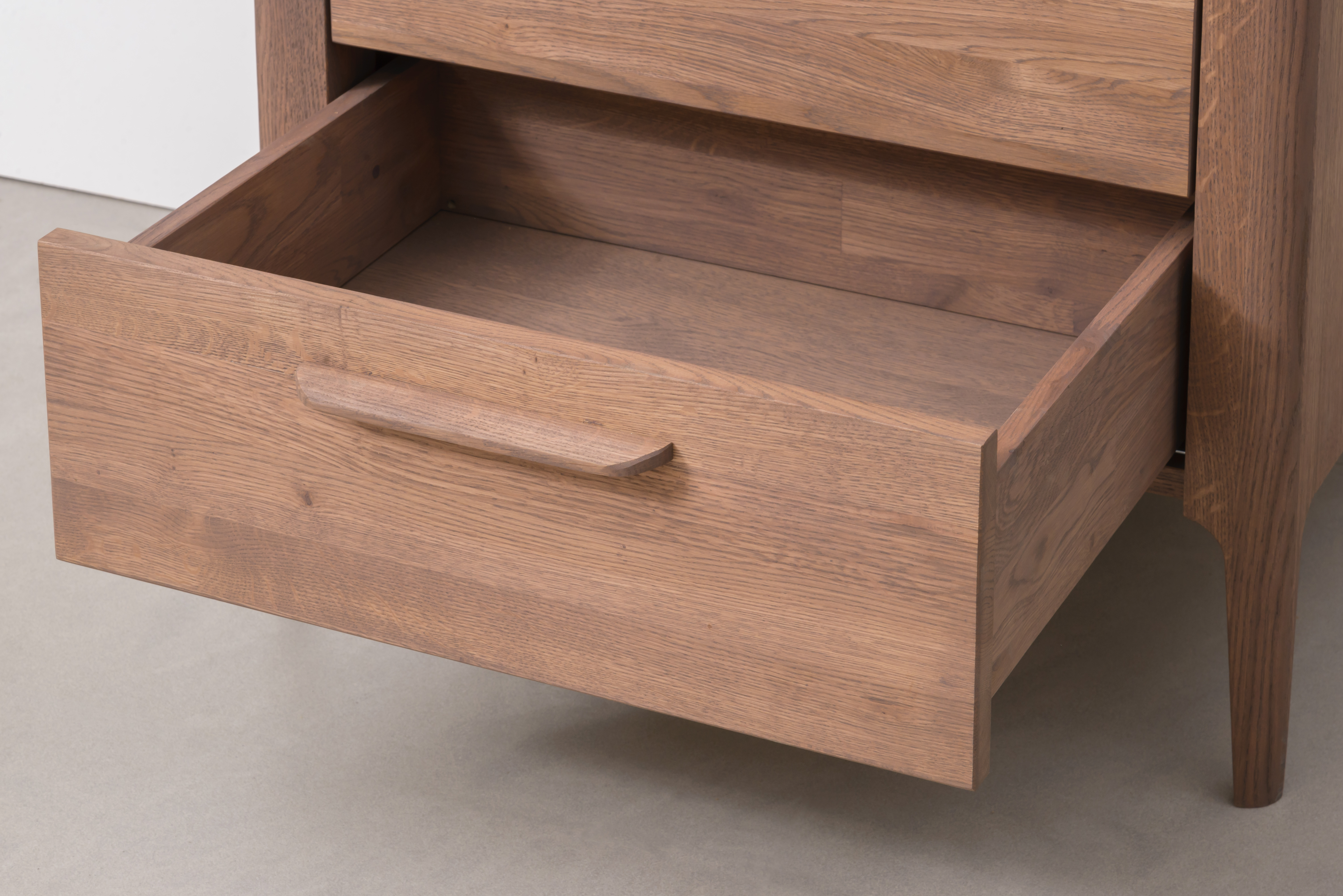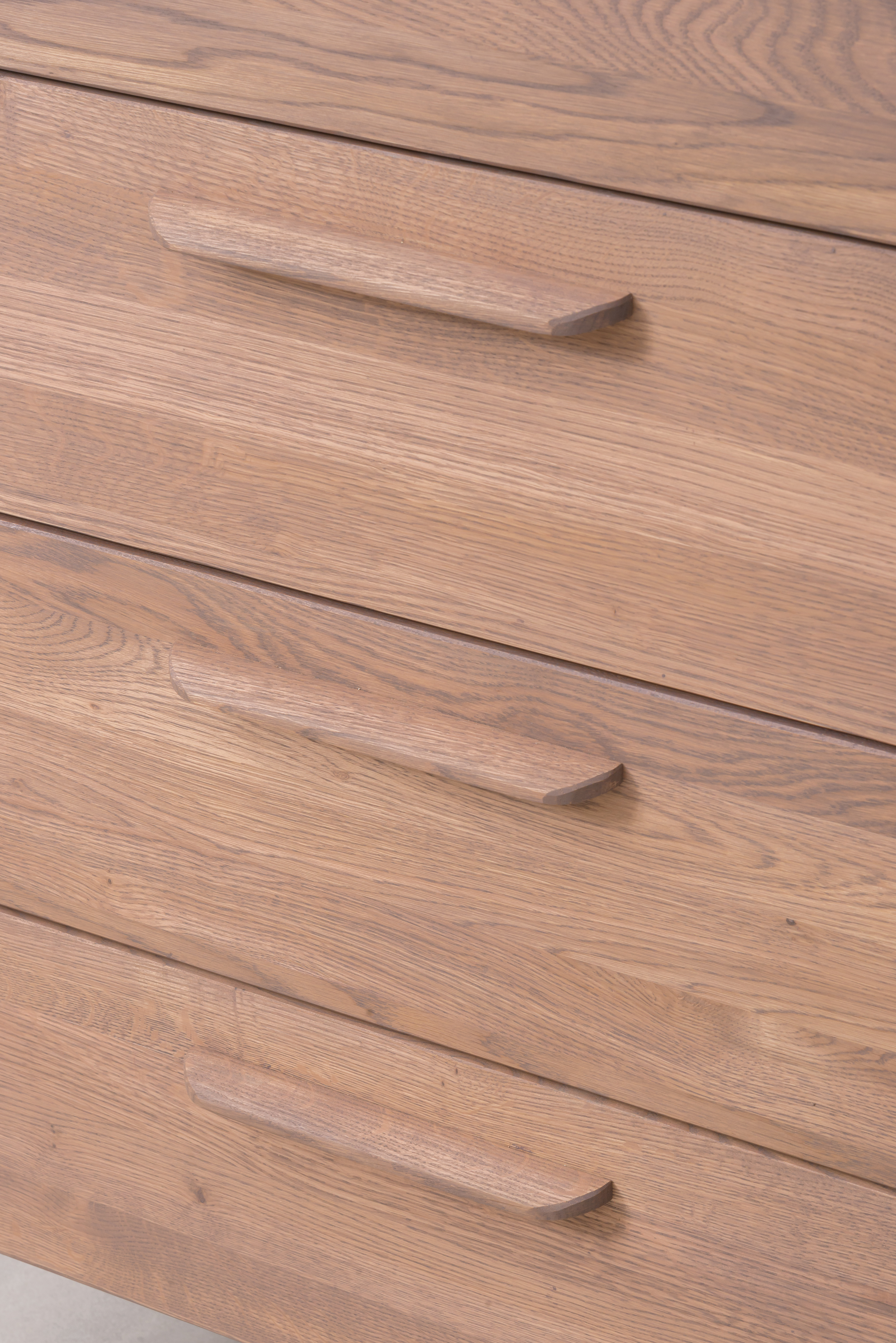 Серия Атланта выполнена в скандинавском стиле, полностью из массива дуба. Поступает в собранном виде, кроме кроватей. Каркас-массив дуб, фасад- массив дуб. Задняя стенка комодов и шкафов, дно ящиков - фанера, облицованная шпоном дуба. Направляющие и петли с доводчиками. Обивка изголовья кровати в ткани велюр. Основание для кровати не входит в комплект, приобретается отдельно. Фотографии на сайте могут не передавать точный тон мебели, узнавайте у менеджеров.