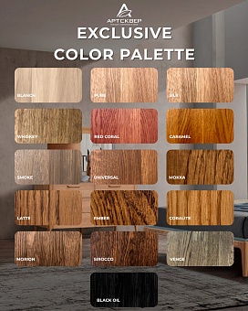 Поверхность мебели покрыта натуральными маслами премиальных брендов, которые подчёркивают естественный рисунок дуба и создают долговечное защитное покрытие.
