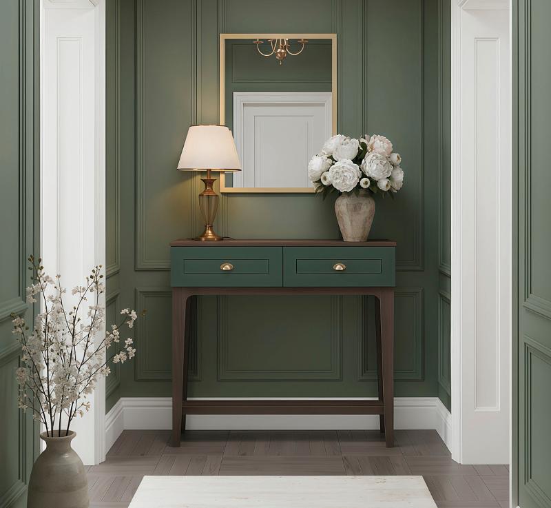 Сочетание насыщенного корпуса Гикори Прадо и акцентного фасада Комбу Грин формирует образ, в котором выразительность встречается с утончённостью. Тёплая древесная текстура наполняет интерьер уютом, а глубокий зелёный фасад придаёт пространству характер и индивидуальность.