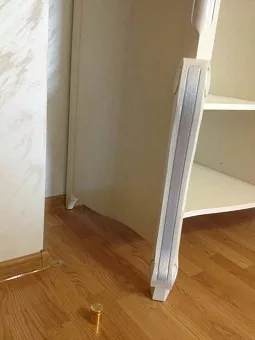 Фурнитура: Используются скрытые направляющие TANDEM полного выдвижения и бесшумного закрывания производства фирмы «Blum» (Австрия), лицевая фурнитура – ручка-кнопка производства «GIUSTI» (Италия); петля шарнирная с доводчиком и стяжки — фирмы «Hettich» Германия.