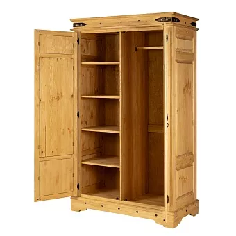 Шкаф для одежды Викинг-02 имеет две распашные двери, внутри расположена штанга для вешалок с одежной и вверху полка для вещей. Шкаф изготовлен из массива сосны. Прекрасно подойдет для спальни или гардеробной комнаты. Как вы думаете, сколько может стоить самый дорогой в мире шкаф? Пять тысяч долларов? Десять? Пятнадцать? На самом деле самый дорогой в мире шкаф, который называется Badminton Cabinet, стоит ни много, ни мало 35 миллионов американских рублей. Для создания этого мебельного шедевра использовалось эбеновое дерево. Кроме того, данный шкаф также был инструктирован лазуритом, аметистами, агатом и кварцем, инкрустирован золотом. И это все при внушительных размерах данного изделия в почти четыре метра… Понятно, что далеко не для каждого интерьера подойдет подобный шкаф, да и не все смогут позволить себе сделать такую покупку, но ведь этот предмет мебели незаменим в любом доме?! Понимая это, мы бы хотели обратить ваше внимание на полностью натуральный и экологичный шкаф из коллекции Викинг. Изюминка этого изделия – это не только его эко логичность, но и модная сегодня стилистика кантри. Полезный совет: Контакты мебели, выполненной из натуральной древесины сосны, с различными красками и прочими химическими реагентами являются крайне нежелательными. Дело в том, что удаляя такие загрязнения при помощи растворителей, очень велик риск разрушить верхний слой поверхности древесины.