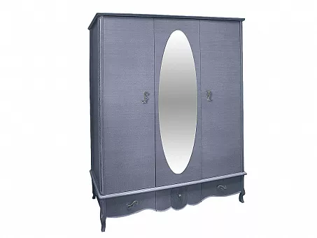 Набор выполнен с использованием шпона и массива дуба на лицевых поверхностях. Украшают набор: фигурный набор шпона, декоративные элементы с выдавленными полосками, подчёркивающими структуру древесины, волнообразные кромки нижних деталей, объёдиняющие все изделия в единую композицию. Зеркало навесное овальной формы прекрасно сочетается с таким же по конфигурации на шкафу. Внутренние поверхности деталей облицованы плёнкой с финиш-эффектом. Крышки из плиты ДСП, облицованной шпоном и бруском дуба с профильным фрезерованием по лицевым кромкам.
