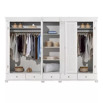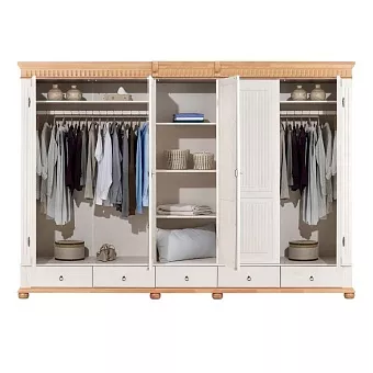Оригинальный и вместительный белорусский шкаф из коллекции “Хельсинки 5SPGT-M” с зеркалом и 5 распашными дверями – отличное приобретение для семьи. В него легко поместится большой гардероб благодаря двум отделения для вещей на вешалках с полками. А оценить свой выходной лук можно в зеркале на одной из пяти распашных дверей. Классика скандинавского стиля для современных интерьеров.