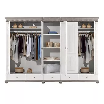 Возможен заказ в трех цветовых решений: полностью белый, в сочетании с серым или с антиком.