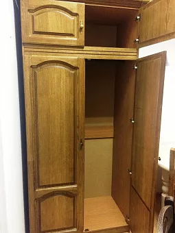 Особая обработка фасадов позволяет увидеть натуральную структуру массива дуба, а искусно выполненная резьба подчеркивает его достоинства. Два больших зеркала не только дают возможность увидеть себя в полный рост, но и визуально расширят пространство комнаты.За двумя створками расположилась штанга, чтобы повесить одежду и множество полочек, чтобы разложить вещи. Сверху находятся два ящика антресоли, а снизу – полки для обуви. Красивая резная консоль сверху дополняет классические формы модели.Можно подобрать четыре варианта цвета: сочную «вишню», благородный «темный орех», нежный «светлый орех» и изысканную «слоновую кость». Сделать правильный выбор помогут наши консультанты, которые быстро оформят покупку и договорятся о ее доставке по нужному адресу. Шкаф для одежды ГМ 8422 Вариант 03- это Хит на долгие года. По нашей статистике 75% людей купивших что то из этой серии приходят к нам в магазин еще раз за покупкой из серии Купава. Это говорит о том что данная мебель Гомельдрева является прекрасным в соотношении цены и качества. И тот факт, что данная серия без каких либо изменений делается на фабрике вот уже более 10 лет, говорит о том что покупатели в восторге от нее.