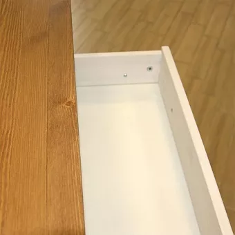 Задние стенки и днища ящиков – из ДВП. Выдвижные ящики оснащают направляющими частичного выдвижения, без доводчиков. Дверные петли Hettich имеют доводчики для плавного закрывания.
