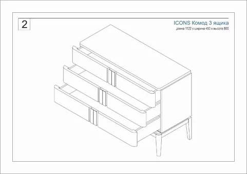 - Артикул Комод 3 ящика ICONS широкий Беленый дуб