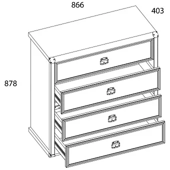 Комод 4S MAGELLAN не только организует компактное хранение предметов одежды, но и отметит в интерьере таинственную и загадочную обстановку. Комод 4S имеет прямую конструкцию. Конструкция элемента представляет собой четыре выдвижных ящика (4S), расположенных друг над другом.
