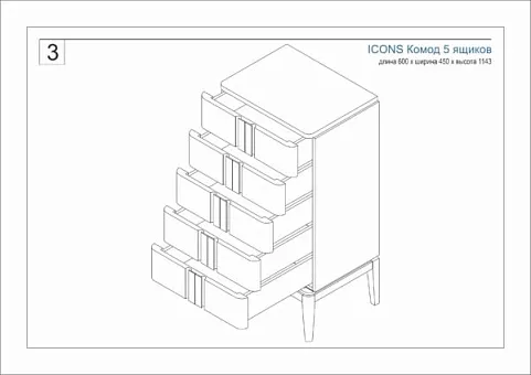 - Артикул Комод 5 ящиков ICONS узкий Беленый дуб