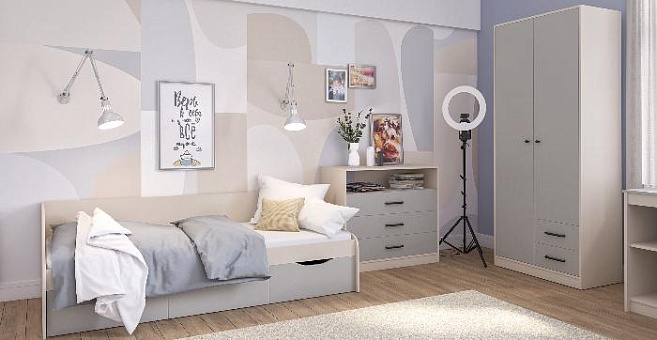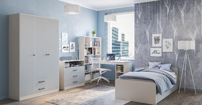 Коллекция Мальма для кабинета или молодежной комнаты создана белоруской фабрикой Неман. Выполнена в стиле минимализм, что характерно для этого стиля: функциональность и нейтральное цветовое сочетание.