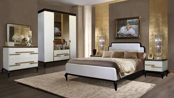 Цоколя и карнизы шкафов и тумб, рамы головных спинок кроватей изготовлены из массива дуба. Крышки и глухие двери – из МДФ, облицованной шпоном дуба. Фотографии могут не передавать точный цвет мебели.