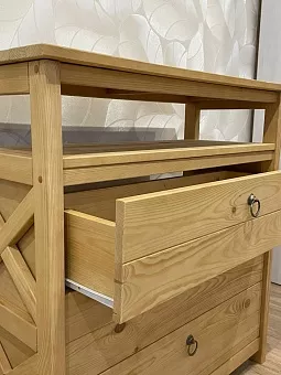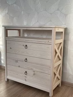 В серию входят разнообразные предметы мебели для спальни, такие как кровати, тумбы, стеллажи, комоды и даже шкафы, которые могут быть использованы как по отдельности, так и в комбинации друг с другом для создания уютных зон отдыха. Комод Оливер изготовлен из высококачественной сосны, что гарантирует его прочность и устойчивость к внешним воздействиям.