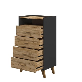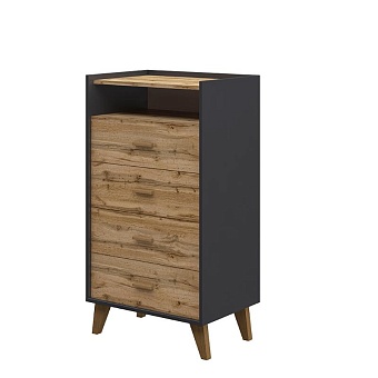 Фасад выполнен из ЛДСП в двух цветах: Белый/Дуб Вотан, Графит/Дуб Вотан.