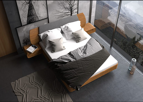 Скруглённые формы придают мебели изящество и безопасность, а продуманная конструкция кровати создаёт эффект «парящей» — визуально облегчает пространство и наполняет атмосферу лёгкостью и свободой.