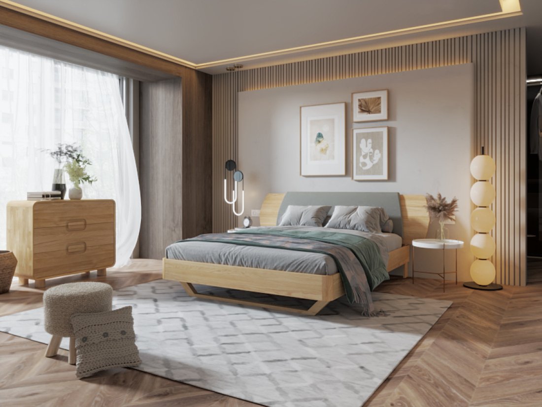 Скруглённые формы придают мебели изящество и безопасность, а продуманная конструкция кровати создаёт эффект «парящей» — визуально облегчает пространство и наполняет атмосферу лёгкостью и свободой.