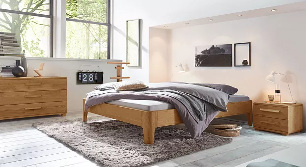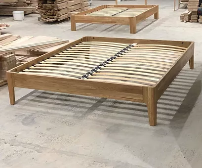 Данная кровать изготовлена полностью из массива дуба. 100% дерево во всех деталях. Это максимальная экологичность и безопасность вас и ваших близких при использовании. Мебель из массива дуба этой фабрики это залог здоровья и идеального сна. Кровать без головной спинки и массивными ножками прекрасно дополняет дизайн изделия. покрытие натуральным маслом. В основании расположены ортопедические ламели, оказывающие амортизирующую поддержку матрасу, что увеличивает срок его службы. Цветовое исполнение: масло Saicos или OSMO (натуральный, отбеленный, венге). Так же есть возможность выбрать три варианта исполнения сращенный дуб/дуб цельноламельный/дикий дуб. Все различия приведены  картинках а так же вы можете уточнить информацию у наших менеджеров.