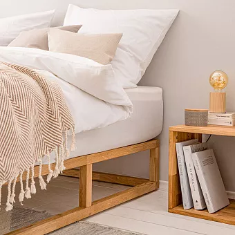 Кровать выполнена в скандинавском стиле. Смотрится современно и гармонично, благодаря простате своих линий и естественной текстуре дерева. Используется 100% массив дуба. Покрытие интерьерными маслами от компании Хенкель. 100% ЭКО отделка, масла не выделяют никаких токсичных частиц. Гарантия защиты и долговечности древесины, сохранение ее текстуры, внешнего вида и естественности. Дубовый настил или ортопедическое основание в комплект не входит и приобретается отдельно.