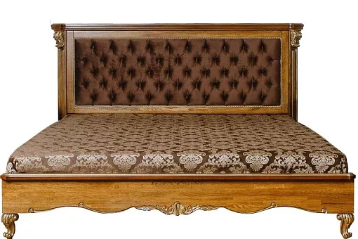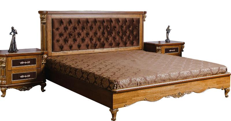 Кровать двойная "Альба 18/1п" П 524.06/1 палисандр (с зол., с сер.) фабрики Пинскдрев в классическом стиле характерна массивность, основательность и пышность форм. Альба является классическим примером мебели из массива дуба. Она включает в себя мебель для обустройства гостиной и спальни. Модули коллекции отличаются поразительной красотой, которая кроется в правильных и прямых линиях, а также большим количеством сложных декоративных деталей в виде «короны» декоративных опор и пилястр. Украшением мебели служат элементы резьбы, инкрустации, имитация позолоты. Материалы изготовления: каркас модулей выполнен из ДСП, облицованной шпоном дуба, фасад рамочно-филёнчатой конструкции. Рамка из массива дуба, филёнки представлены стеклом с фацетом или фанерой, инкрустированной шпоном ценных пород древесины. Отделка: красители Herlac, Helios, Renner; патины Vernitech, Renner; полиуретановые лаки и грунты Helios; эмали Helios, Sirca; акриловые лаки Herlac. Коллекция имеет два варианта крашения: «Слоновая кость с золочением», «Палисандр с золочением». Фурнитура: направляющие Quadro с доводчиками, петли GTV Pres tige. Лицевая фурнитура - фирма Brass. Кровати изготавливаются без подъемного механизма. Фотографии на сайте могут не передавать точный оттенок мебели.