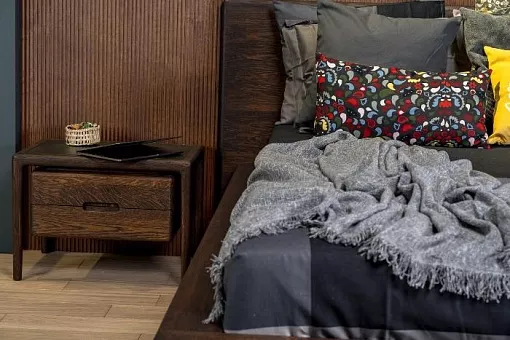 Кровать Элегия выполнена из массива дуба с сохранением естественной фактуры древесины. Отделка поверхности выполнена с помощью масла на водной основе, нанесенного втиранием, может быть изготовлена в нескольких цветах на выбор: 10 цветов масел OSMO. Вес изделия 103 кг.