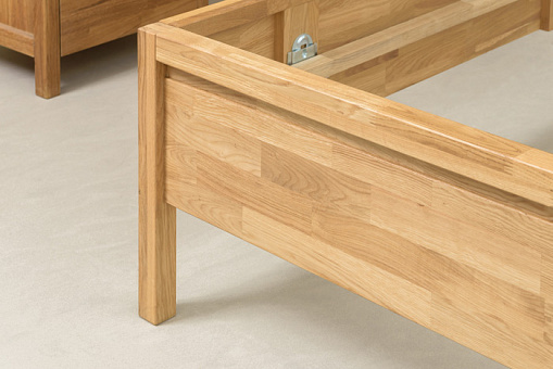 Кровать выполнена в скандинавском стиле. Смотрится современно и гармонично, благодаря простате своих линий и естественной текстуре дерева. Используется 100% массив дуба. Покрытие интерьерными маслами от компании Хенкель. 100% ЭКО отделка, масла не выделяют никаких токсичных частиц. Гарантия защиты и долговечности древесины, сохранение ее текстуры, внешнего вида и естественности. Дубовый настил или ортопедическое основание в комплект не входит и приобретается отдельно. Вес изделия 59,8 кг. Габаритные размеры: