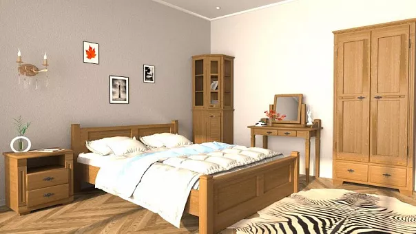 Серия мебели Хлоя из массива сосны. На крышках и и фасадных элементах толщина 3 см. толщина остальных деталей 1,5-2 см. Фурнитура выполнена из метала так же в изделии присутствуют кованные элементы. Ящики с шариковыми направляющими. Фасады типа Жалюзи не сквозные что защищает внутренние отделения от пыли и света. головная спинка 101 см ножная спинка 61 см
