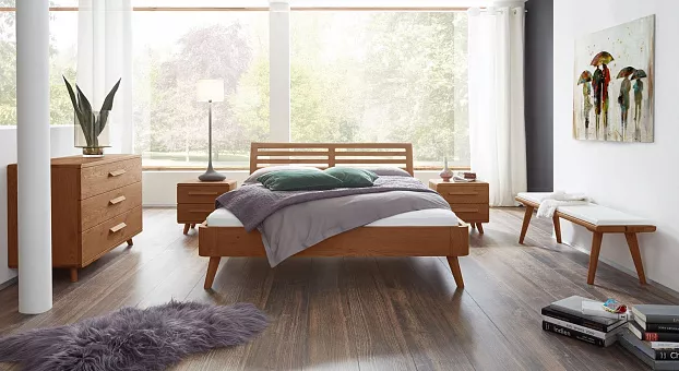 Кровать Lugo modern (RO191+RX191+R205) 140*200 с мягкой спинкой из массива дуба