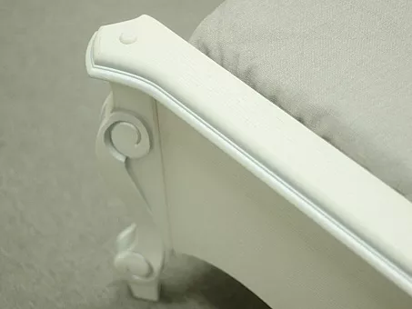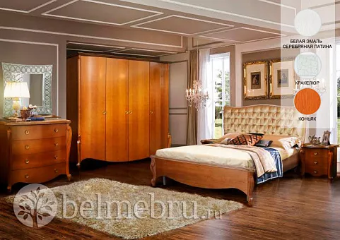 Плавные линии, изогнутые поверхности, изящные ножки придают спальне утончённость и женственность. Кровать манит к себе мягкой спинкой, очаровывает и не отпускает. Изящный туалетный столик с секретом, когда часть крышки лёгким движением руки становится зеркалом. Изделия имеют несколько цветовых решений: классический благородный — «коньяк», нежный, утончённый – «белая эмаль с серебряной патиной» и неординарный, удивительный – «кракелюр».