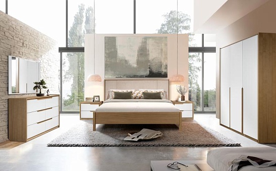 В серию входят кровать, шкаф для одежды, зеркало, тумба прикроватная, комод. Фурнитура: петли и направляющие Boyard (Китай).