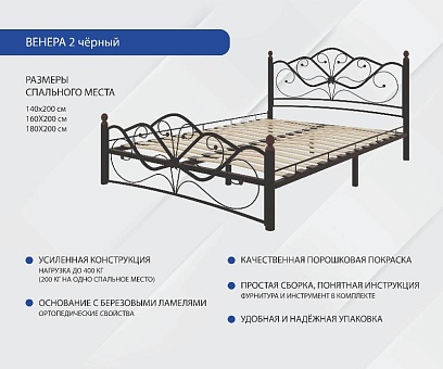 - Артикул Кровать металлическая “Венера 2” 160x200
