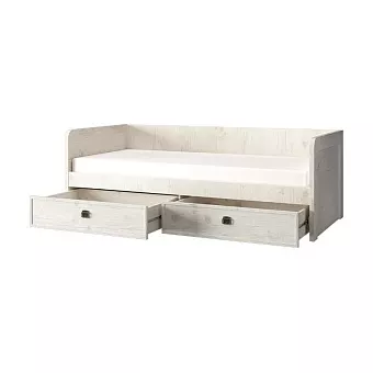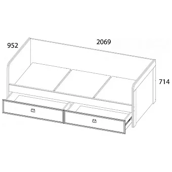 Кровать 90-2 MAGELLAN – односпальная, размер спального места – 900*2000 мм. Конструкция представляет собой корпус с бортами, два выдвижных ящика, основание (щиты ЛДСП). Такой вариант кровати очень удобен в эксплуатации - боковой борт будет сохранять целостность обоев или покраски, защищать от соприкосновения со стеной.