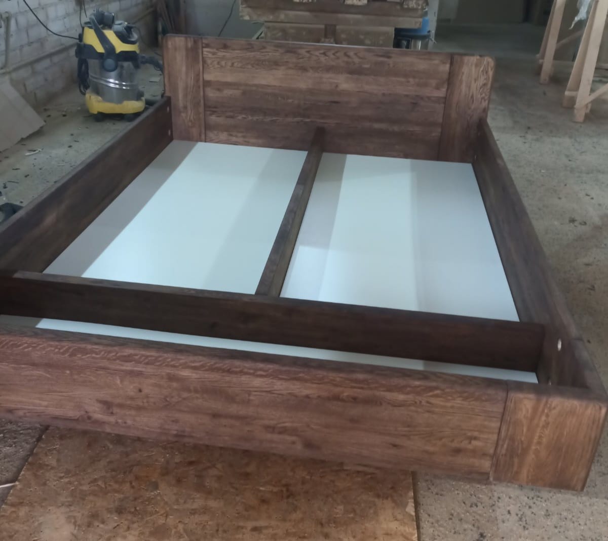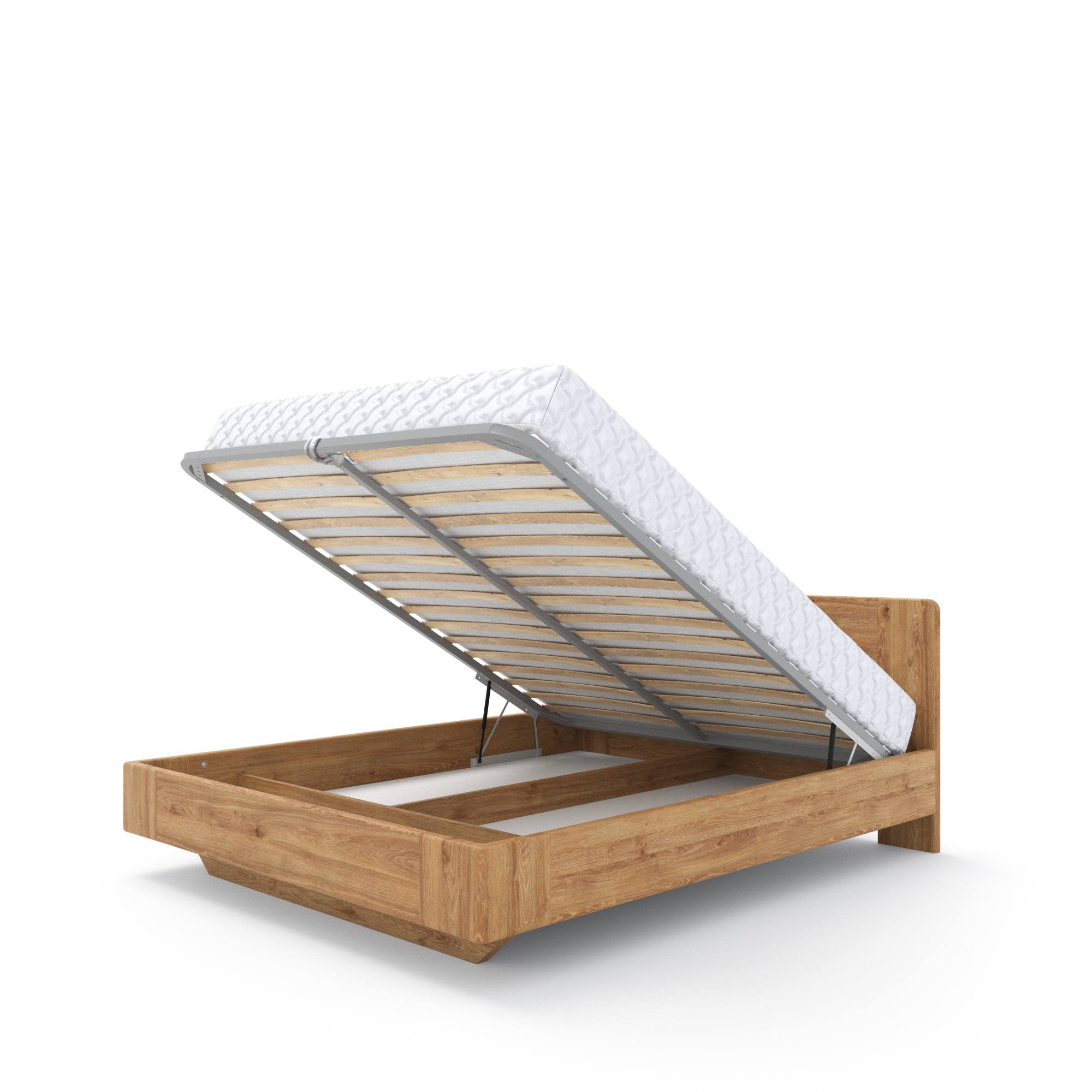 Высший сорт (цельноламельный щит без сучков или других пороков дерева). Кровать поставляется в комплекте с решеткой и подъемным механизмом. Дно выполнено из оргалита и имеет ребра жесткости из массива дуба срашенного типа. Также кровать может быть укомплектована интегрированными прикроватными тумбочками подвесного типа ( крепится к царге) Высота изголовья 930 мм Высота царги 270 мм Растояние от пола до низа царги 130 мм от пола до верха царги 400 мм Утапливаемость матраса 100 мм. Можно изготовить под заказ с изменением размеров.