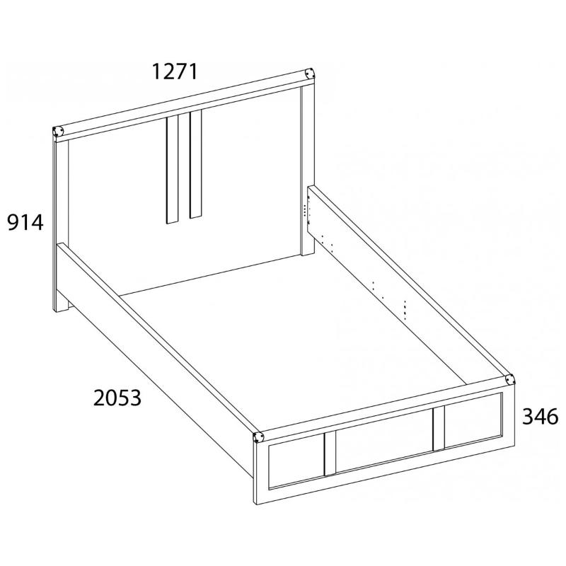 Кровать 120 MAGELLAN – полуторная, размер спального места – 1200*2000 мм. Конструкция кровати представляет собой сплошное изголовье и изножье прямоугольной формы с планками из ЛДСП, царги и металлическое основание на ножках (цельный металлический профиль с защитным покрытием (металлические ножки прикручиваются к основанию)). Деревянные ламели служат дополнительной амортизирующей основой.